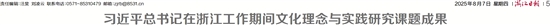 习近平总书记在浙江工作期间文化理念与实践研究课题成果
