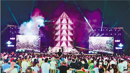 | 8月10日晚,为期三天的“2025柯桥多巴胺鉴湖欢乐夜”活动在绍兴柯桥瓜渚湖畔落幕。这场融合炫酷声光、低空科技与沉浸式多元消费场景的夏日盛宴,为柯桥“夜经济”注入强劲活力。图为8月8日晚活动现场。 本报记者 金燕翔 共享联盟·柯桥 高洁 文 本报记者 董旭明 实习生 陈阷陑 摄 |