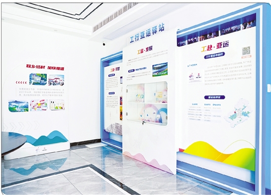 “工行亚运驿站”一角。这不仅是服务亚运的展示之窗,也成为下姜村民走近银行、走近亚运的互动之窗。
