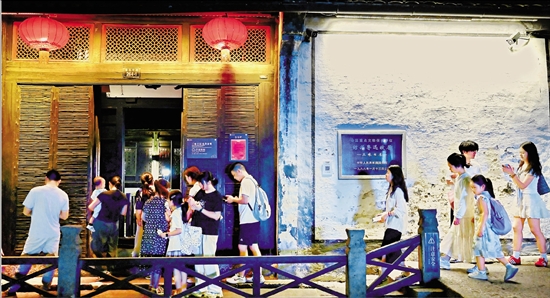 8月19日晚,夜幕下的绍兴鲁迅故里景区灯火璀璨、游人络绎不绝,勾勒出一幅古城夜游的生动画卷。自8月1日起,绍兴越城区与绍兴市文旅集团联合推出“夜游·夜购·夜食”系列活动,并将景区开放时间延长至24时,有力激活了夜间消费市场。图为游客排队参观三味书屋。 本报记者 董旭明 摄 |
