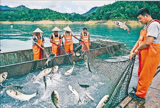 珊溪水库有机包头鱼成了水养殖金名片。 共享联盟·文成 朱伟 摄