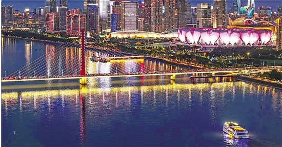 “晴西子号”游船载着游客驶入美丽的钱塘江夜景。 本报记者 董旭明 摄