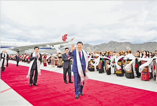 习近平率中央代表团抵达拉萨 出席西藏自治区成立60周年庆祝活动