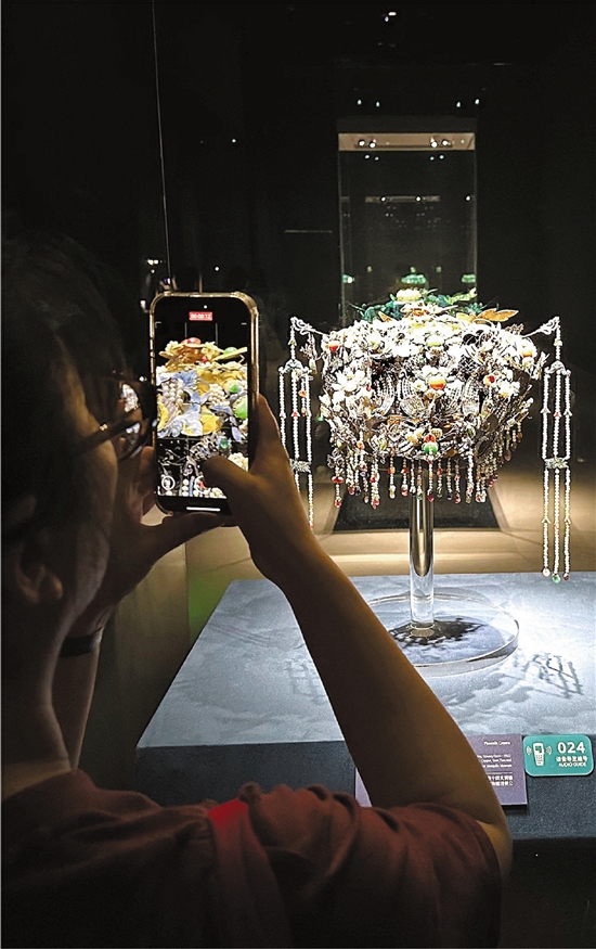 珍宝艺术展现场,观众对着凤冠等展品拍照。 本报记者 徐文迪 摄