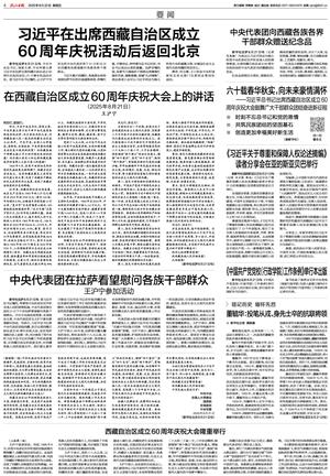 - 在西藏自治区成立60周年庆祝大会上的讲话