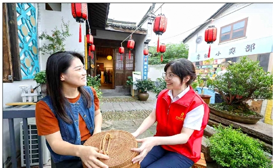 义乌农商银行工作人员在李祖村走访农创客,助力乡村创业创新。 章闳远 摄