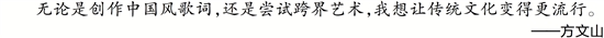 无论是创作中国风歌词,还是尝试跨界艺术,我想让传统文化变得更流行。 ——方文山