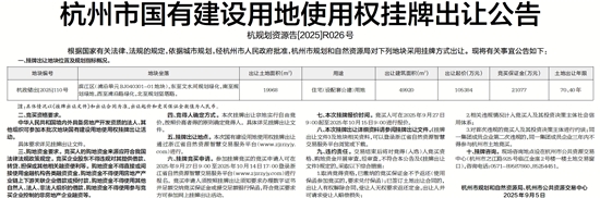 杭州市国有建设用地使用权挂牌出让公告
