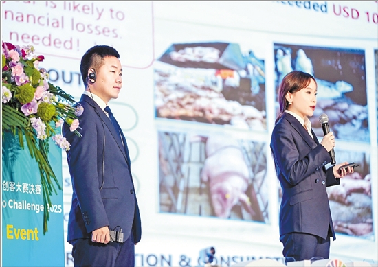 现场路演环节,“猪群实时守护战团队”代表介绍项目。 傅俊豪 摄