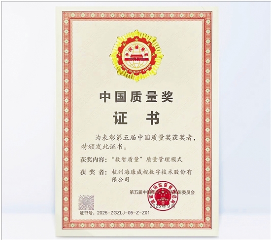 海康威视荣获第五届中国质量奖 图片由高新区(滨江)市场监管局提供