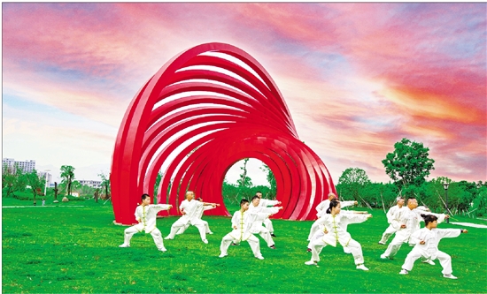 市民在黄岩智能模具小镇主题公园锻炼