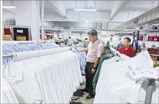 农行义乌分行客户经理实地走访衬衫生产企业 图片由农行义乌分行提供