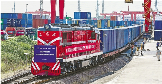 9月17日,一列中欧班列驶出义乌西站。 共享联盟·义乌 吕斌 摄