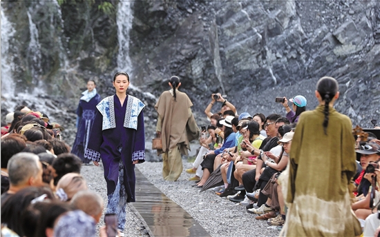 10月12日,一场植物染服饰时装秀在德清县莫干山镇五四村矿坑举行。这场时装秀将传承与创新融合,表现了对新面料、新工艺的探索与应用。 通讯员 谢尚国 摄