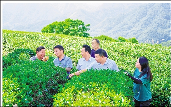 浙江省委党校结对帮扶工作组走访街头镇丰源村茶叶基地。