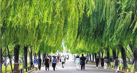 | 10月14日,在弱冷空气影响下,杭城凉爽上线。西湖边,游客凉爽出游。今天起至17日,副高还会再次加强西伸北抬,气温可能会经历小幅反弹,但18日至19日有较强冷空气到来,杭城将出现“换季式”降温,可能一步入秋。 通讯员 里尔 摄 |