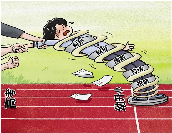 眼下在一些地方,中小学生超前学习现象愈演愈烈,孩子为此背负超纲课业,家长也深陷“囚徒困境”。“双减”政策需持续发力,严控培训机构超纲教学,学校坚守“零起点”教育,家长更应破除焦虑,还孩子健康成长的节奏,方能行稳致远。 金妍 陈昱志 作 |