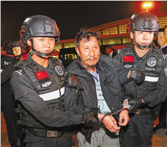 2024年1月30日,在缅甸内比都国际机场,缅甸警方依法向我公安机关移交缅北重大犯罪嫌疑人魏怀仁(资料照片)。 新华社记者 殷刚 摄