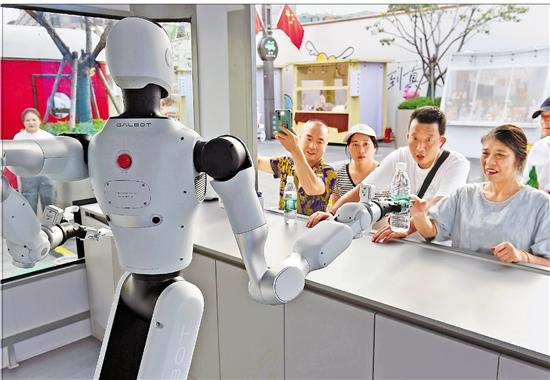 浙江积极推进“文化+科技”“文化+旅游”“文化+民生”,激发文化消费新动能,图为西湖景区里机器人上岗为游客售货。