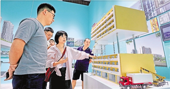 参观者在了解模块化集成建筑技术。 本报记者 林云龙 摄
