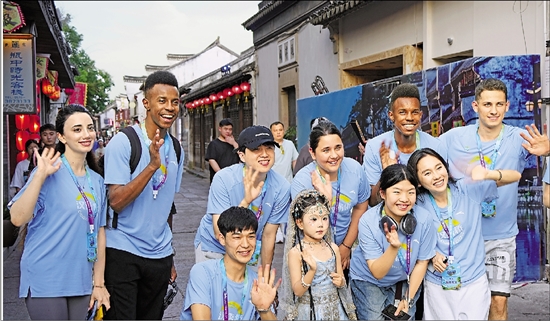 湖州南浔古镇以打造国际化人文旅游目的地为目标,推动古镇国际吸引力与接待量持续攀升,1月至9月,入境过夜游客同比增长60%。图为外国人正在古镇游览、合影。 通讯员 徐奕凡 摄