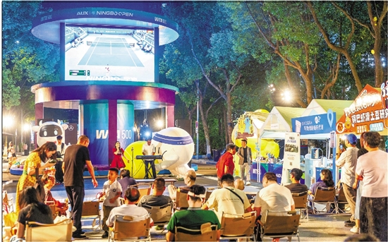 宁波网球公开赛在赛场外设置了观赛区,市民可以一边品尝美食一边观赛。
