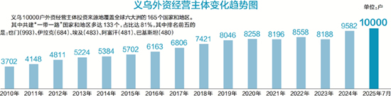 义乌10000户外资经营主体投资来源地覆盖全球六大洲的165个国家和地区。