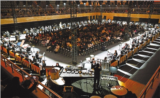 10月30日晚,第六届杭州现代音乐节在浙江音乐学院体育馆落幕。闭幕式上演奥地利作曲家格奥尔格·弗里德里希·哈斯的作品《一万一千根弦》,这是该作品在亚洲首演,由维也纳现代声音乐团与浙江音乐学院钢琴系学生联袂呈现,演奏钢琴的数量多达50架。本届音乐节由浙江音乐学院主办,汇聚中国、美国、俄罗斯等15个国家和地区的艺术家。