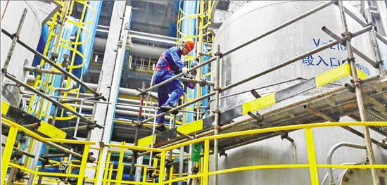 省特科院检验人员对浙石化3#重整装置进行容器超声检测 图片由浙江省特种设备科学研究院提供