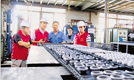 宁波市银辉志愿者联合会的老专家走进当地企业助力高质量发展。 省委老干部局供图