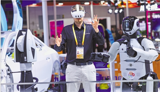 外国参展商演示工业机器人操控。 本报记者 倪雁强 王建龙 摄