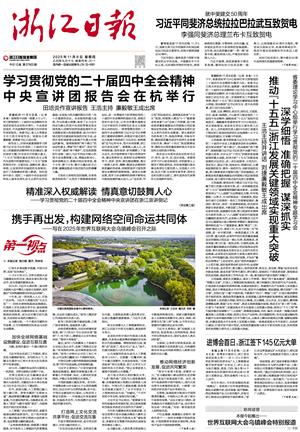 王浩强调,要学深悟透习近平总书记在党的二十届四中全会上的重要讲话和全会精神,更加坚定拥护“两个确立”、坚决做到“两个维护”,深刻把握习近平总书记和党中央赋予浙江的重大使命,充分认识“十四五”时期我省发展取得的重大成就,科学分析“十五五”时期我省发展的方位定位,进一步扛起使命、示范先行,坚定信心、鼓足干劲,找准定位、明确目标,以勇闯新路的担当、勇争一流的作为、创新创造的实践,努力探索更多可复制可推广的经验做法,不断推动高质量发展建设共同富裕示范区取得更大成果,奋力谱写中国式现代化浙江新篇章。