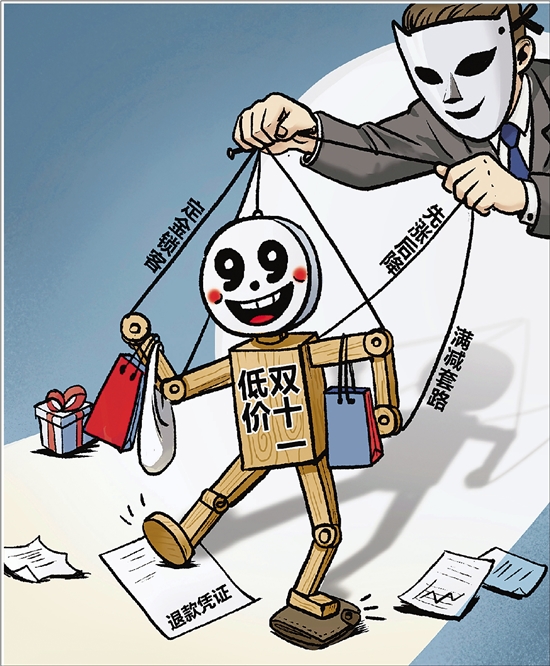 “双十一”购物节余温尚存,但“尾款跳涨”“价格猫腻”等消耗着消费者的信任与热情。欲促消费,先优环境。商家应摒弃套路,以真诚回馈用户;监管须重拳出击,用规则捍卫公平。唯有各方合力,共建透明、公平的消费环境,才能提振消费信心,让消费活力持续迸发。 林琳 朱潋 作 |