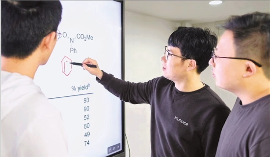 张夏衡(中)与团队成员探讨业务。 受访者供图