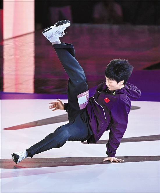 11月18日,在霹雳舞女子组铜牌赛中,曾莹莹获得季军。图为曾莹莹在比赛中。 本报特派记者 董旭明 王建龙 摄