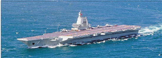 日前,海军福建舰开展入列后首次海上实兵训练。这是福建舰在航行。