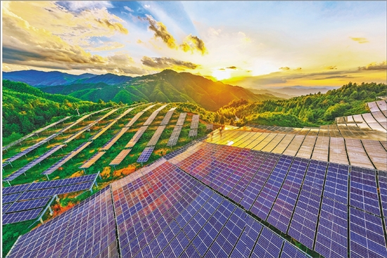 夕阳下的景宁县红星街道52兆瓦光伏发电基地 季维娜 摄