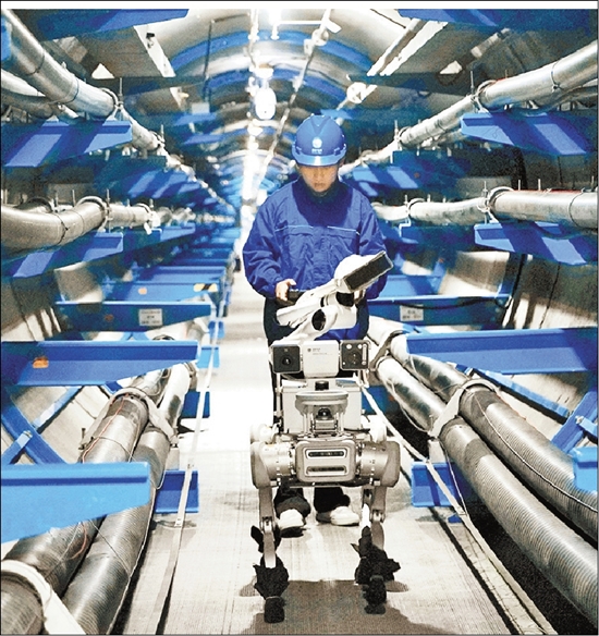 9月23日,国网绍兴供电公司工作人员正在运用巡检机器人对地下电缆隧道进行巡视,排查安全隐患。 潘园园 摄