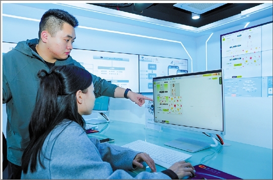 工作人员调试纺织印染行业垂类大模型“AI布”2.0新功能