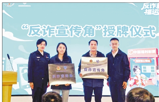 11月14日,在“反诈新坐标 福运零距离”活动上,省福彩中心为杭州两家福彩爱心驿站“反诈宣传角”授牌。