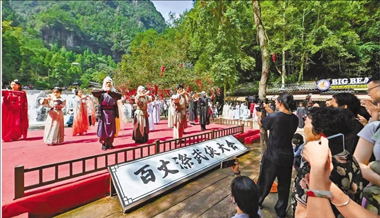 文成百丈漈武侠大会《侠影江湖》表演现场。 共享联盟·文成 夏晓强 摄