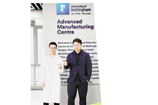 宁波诺丁汉大学博导李灏楠(右)和学生在一起。 受访者供图