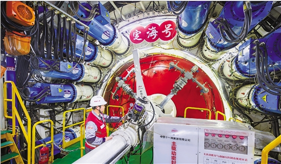 | 11月28日上午,在甬舟铁路金塘海底隧道舟山侧施工现场,“定海号”盾构机掘进里程成功突破5000米大关,标志着该隧道全长6270米的舟山侧盾构段已完成80%的掘进任务,世界最长海底高铁隧道建设再次取得重要进展。 本报记者 周杭琪 共享联盟·定海 余若望 通讯员 周俊 摄 |