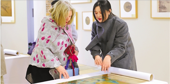 讲解员在“大系”剑桥大学宋画特展现场为观众讲解。 “中国历代绘画大系”项目组供图