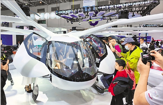 观众参观万丰奥特控股集团的电动垂直起降器。 本报记者 周旭辉 摄
