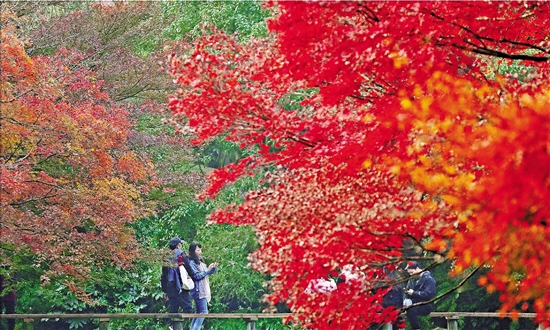 这些天,杭州九溪烟树景区迎来红枫最佳观赏期。12月1日,枫林如霞似火,勾勒出一幅美丽画卷,吸引市民与游客前来。