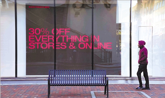 当地时间11月28日,美国佐治亚州亚特兰大的一家购物中心挂出“黑色星期五”促销广告。 CFP供图