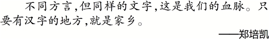 不同方言,但同样的文字,这是我们的血脉。只要有汉字的地方,就是家乡。