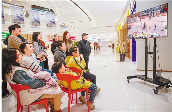 全域皆可观:衢州市民在流动观赛点收看衢州队和绍兴队的比赛。