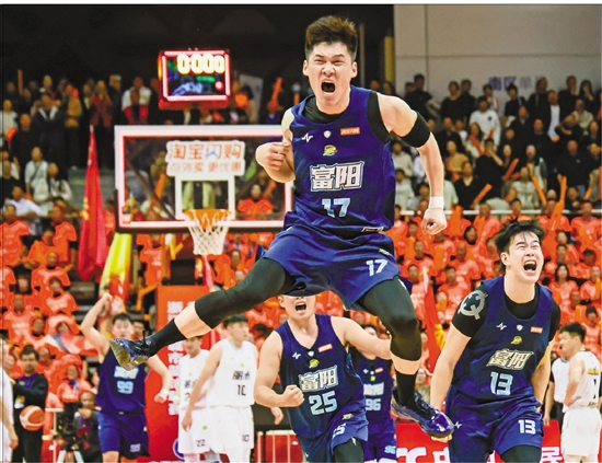 定格绝杀时:丽水队和富阳队比赛最后的读秒阶段,富阳队17号运动员章佳飞命中关键投篮。